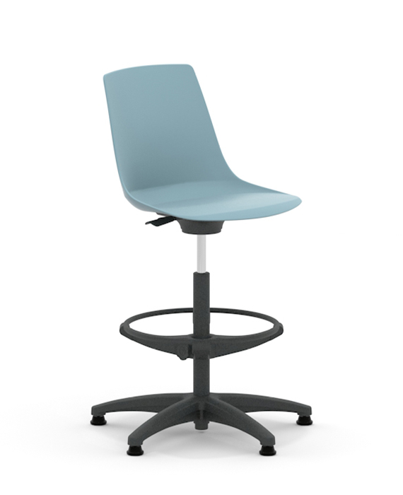 Arlo is a Plastic chair with the option of an upholstered seat pad and five frame options, four leg, four leg with arms, skid, 5 star base with castors or high stool.