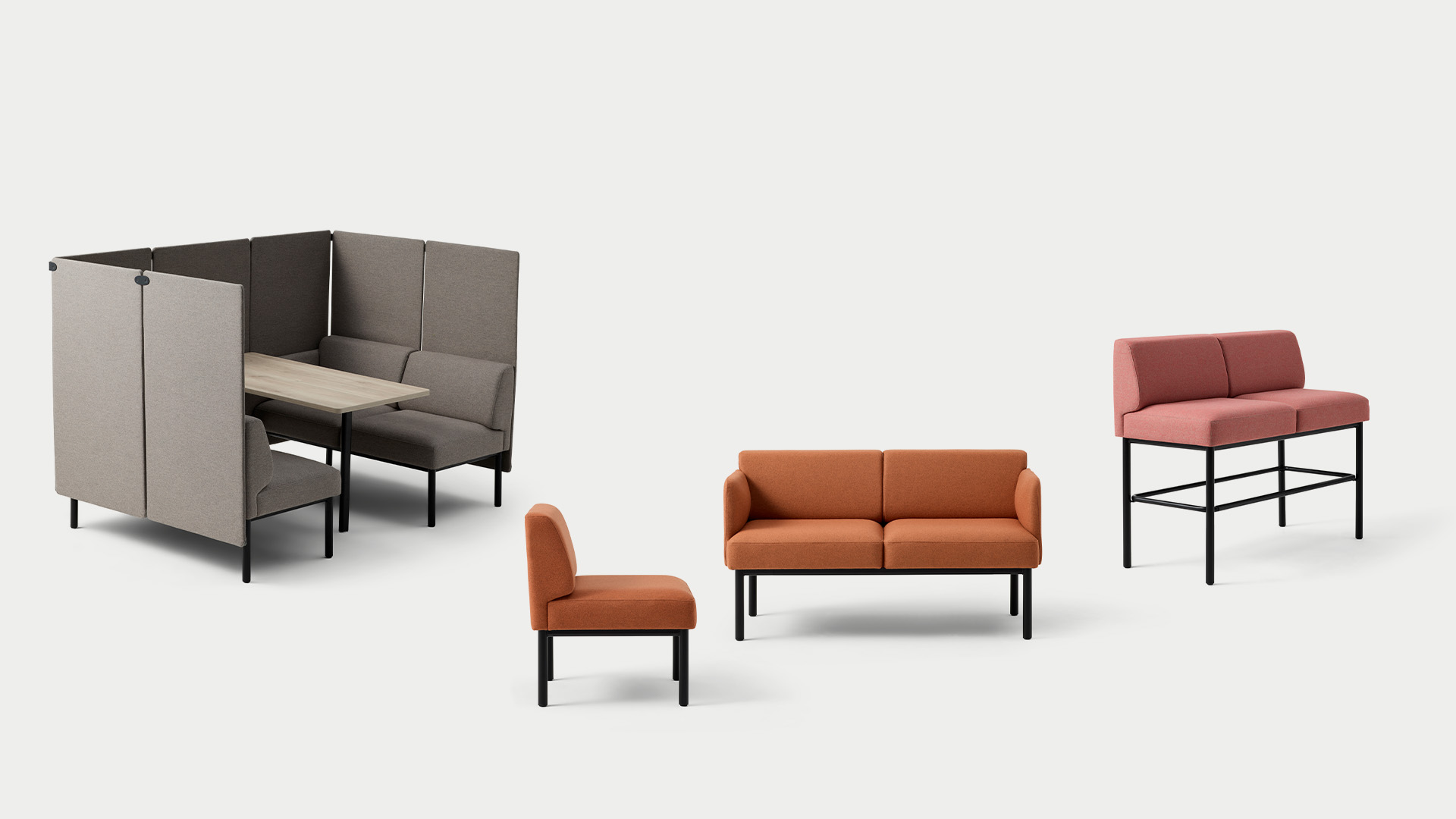 From inviting sofas to versatile booths, towering high pieces, and curved tables, Moxi offers an extensive selection to meet diverse office needs.
