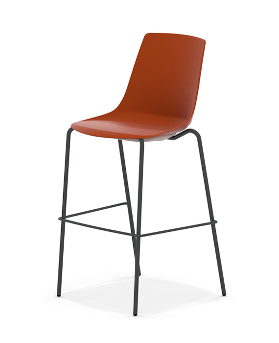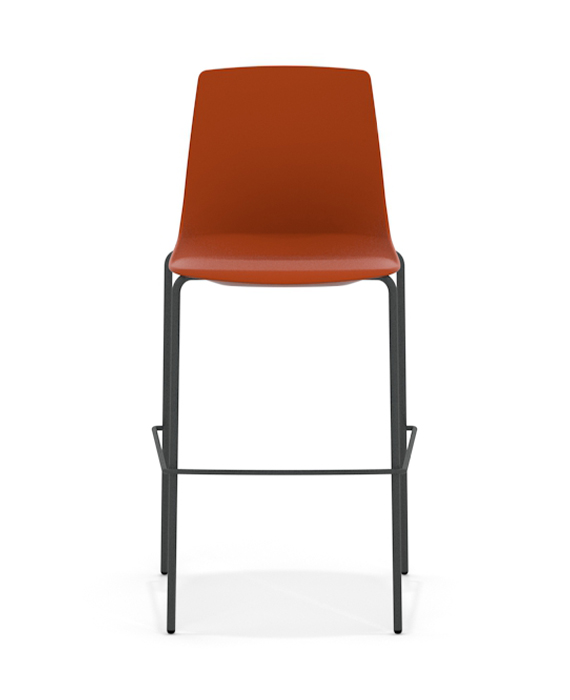 Arlo is a Plastic chair with the option of an upholstered seat pad and four frame options, four leg, four leg with arms, skid or high stool.