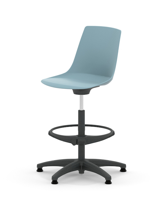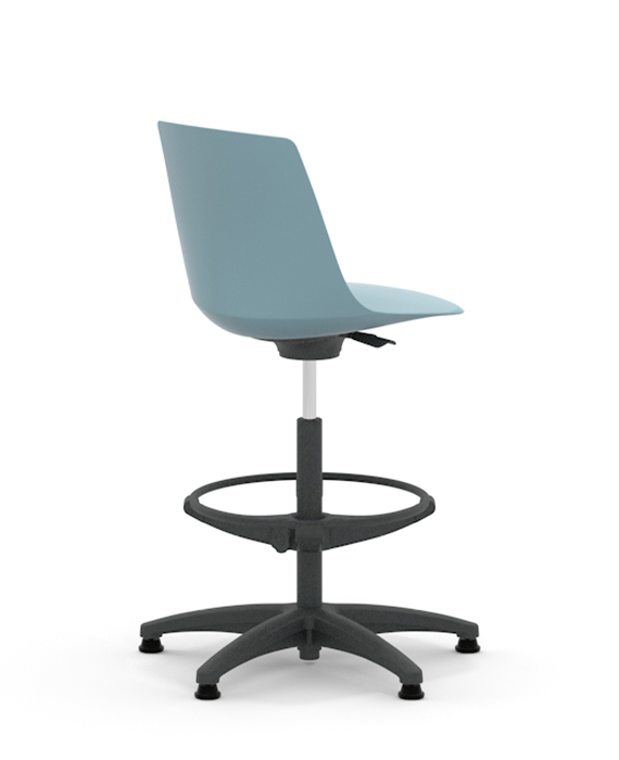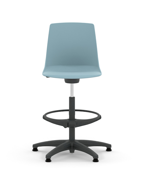 Arlo is a Plastic chair with the option of an upholstered seat pad and five frame options, four leg, four leg with arms, skid, 5 star base with castors or high stool.