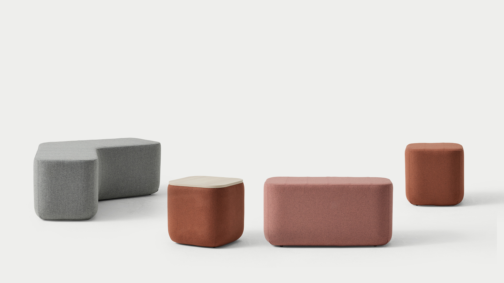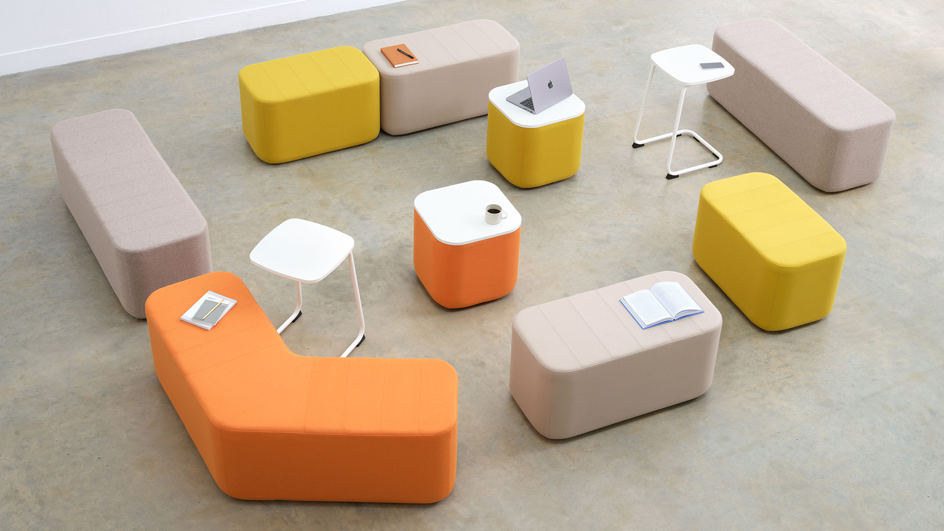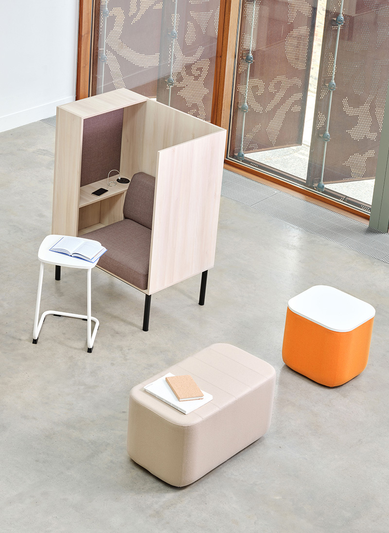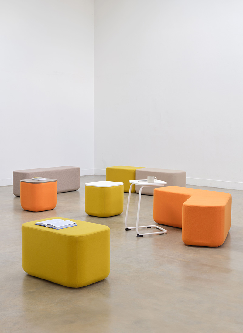 The fully upholstered soft seating blocks can be configured to suit various layouts, providing flexible seating arrangements that can adapt to the ever changing needs of an environment.